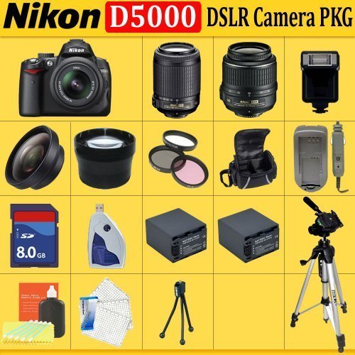 This Kit Includes:1- Nikon D5000 12.3 MP DX Digital SLR Camera with 2.7-inch Vari-angle LCD (Includes manufacturer's supplied accessories)